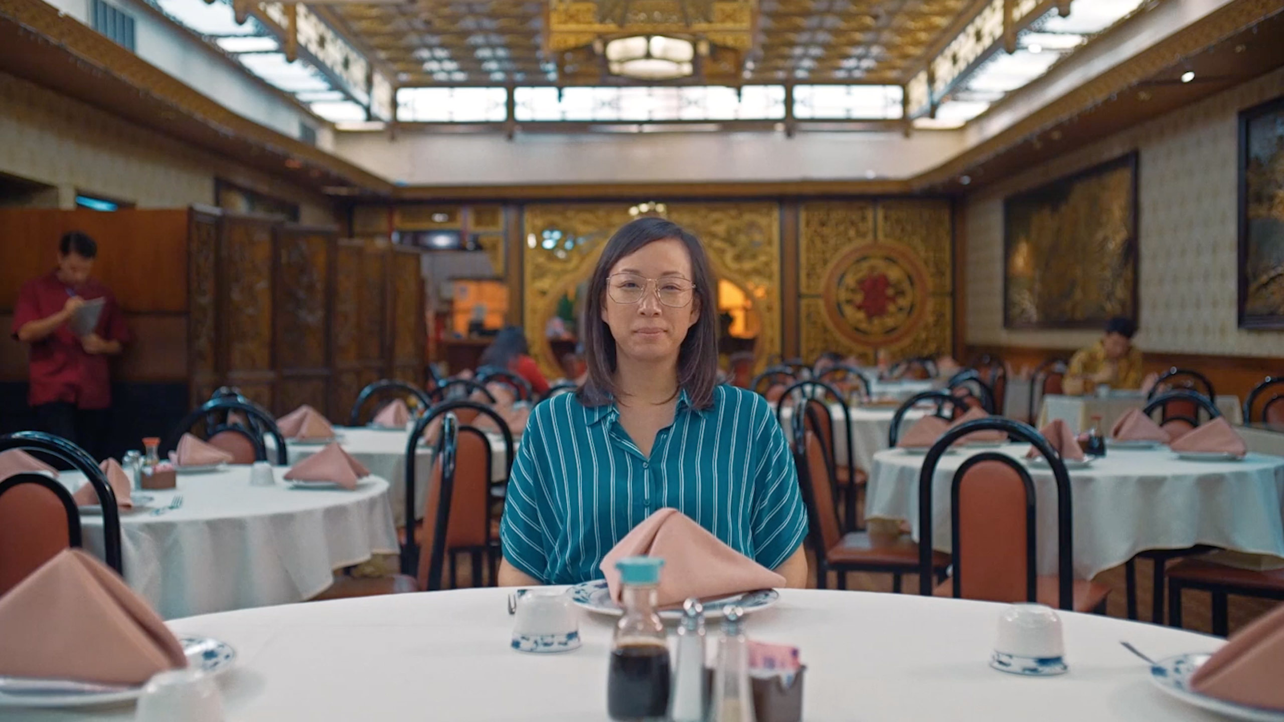 Visually, the film is a treat. The camera often moves in circles, matching the way everything spins around Susan. Warm pastel colors make the restaurant look cozy, and bright lighting keeps every clever gadget and funny expression in clear view. One scene that really sticks with you is the wide shot where tables and chairs revolve like a merrygoround, placing Susan right at the center of all the action.