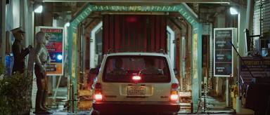 The tight opening shot of the car’s windscreen with Jennifer in the frame gave a detailed expression on how sad, frustrated and hungry she was. Bright colors flood the frame.At first pink foam, green neon, and yellow lights. Then they fade to deep blues and purples, telling me without words that something serious is about to happen. Every shot is carefully framed so I felt like I am right there inside the wash, sharing their moment.